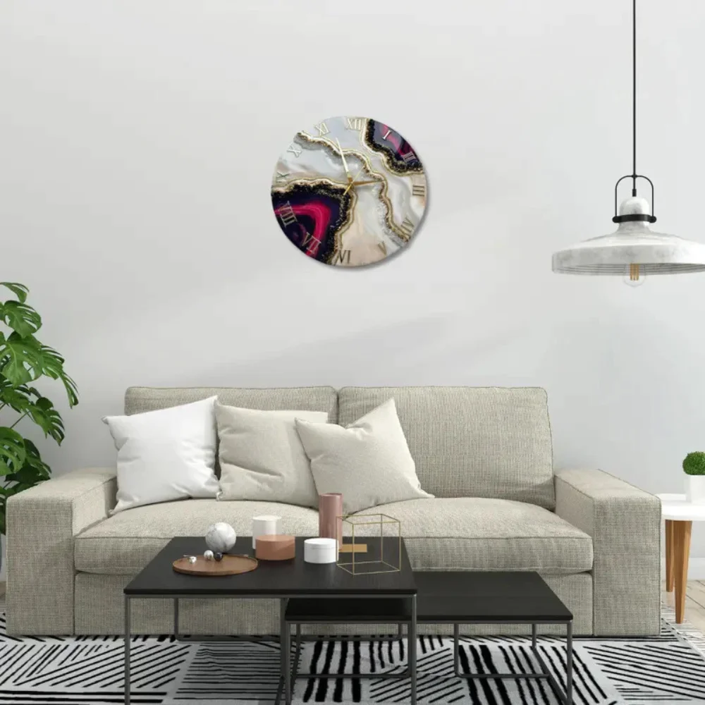 Unique Resin Wall Clock: Multi-Color Marble Texture – Designer Decor for Kids’ Spaces